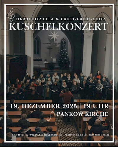 Wir sind mit voller Wucht in die neue Saison gestartet: Nachdem wir traditionell am 01. September ein klein wenig zum Weltfireden(stag) beigetragen haben, zogen wir bereits eine Woche später Lustwandelnd durch den schönen Schlosspark am Schloss Schönhausen und lauschten - zwischen unseren musikalischen Beiträgen - kurzweiligen Geschichten zur Geschichte des Ortes. Nun freuen wir uns auf die Weihnachtszeit! Doch bevor wir voll in läutende Glocken und rieselnden Schnee eintauchen, geht es am 19.10. mit dem Projekt "Songs of Europe" von ChoralSpace noch einmal in den Kammermusiksaal der Philharmonie. Wir freuen uns auf euren Besuch!